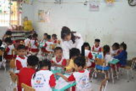 Giờ tập tô của các cháu Trường Mẫu giáo xã Hiệp Tùng. |