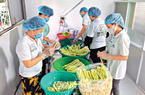 | Công đoạn sơ chế dưa bồn bồn OCOP 3 sao. |