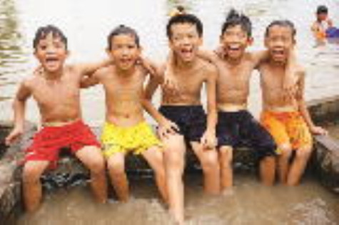 | Các em hăng hái tập bơi. |