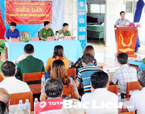 Công an xã Vĩnh Thịnh (huyện Hòa Bình) tổ chức diễn đàn Công an xã lắng nghe ý kiến Nhân dân. Ảnh: K.K