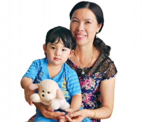 | Cô Út Chung hạnh phúc bên cháu nội. |