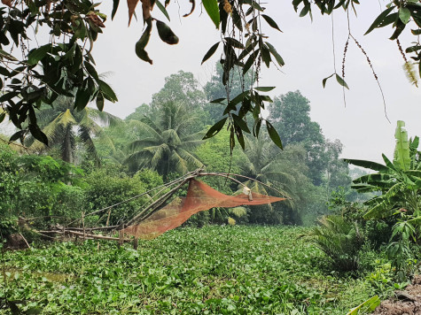 Mẹ tôi từ đồng về, bùn còn bết dính đầy chân. Bên hông mẹ, chiếc rổ tre thấp thoáng những cọng rau màu xanh và những bông hoa màu tím. Trưa nay đổi món, mẹ làm gỏi lục bình ăn.