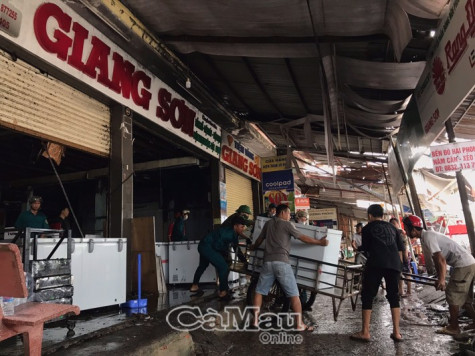 Vụ cháy xảy ra tại doanh nghiệp tư nhân chuyên kinh doanh Kim - Khí - Điện máy và điện thoại di động nên ngọn lửa bốc cao và có nguy cơ lan nhanh ra khu vực đông dân cư lân cận. Tiếp nhận vụ việc, chính quyền địa phương đã huy động cả lực lượng quân sự vào cuộc. Lực lượng công nhân của các công ty thủy sản lân cận và đông đảo người dân trên địa bàn cũng tham gia chữa cháy.