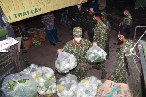 Không chỉ đảm đương tốt nhiệm vụ tuyến đầu, Bộ CHQS tỉnh cho biết, LLVT tỉnh còn đóng vai trò nòng cốt tổ chức thành công “Gian hàng 0 đồng” mang đến hàng ngàn suất quà cho người dân có hoàn cảnh khó khăn do ảnh hưởng của đại dịch COVID-19 trên địa bàn 7 huyện, thị xã, thành phố. Ngay trong lúc khó khăn nhất do tỉnh thực hiện giãn cách xã hội, hàng ngàn hộ nông dân còn được LLVT tỉnh nhà hỗ trợ tiêu thụ kịp thời hàng chục tấn rau cải các loại; giúp nông dân thu hoạch, vận chuyển thực phẩm với 542 lượt xe. Ở các chuyến hàng “đặc biệt” đó, có 1.202 lượt cán bộ, chiến sĩ, dân quân tham gia vận chuyển. LLVT tỉnh còn vận chuyển 45 tấn gạo, nhiều tấn cá khô, cá tươi, tôm đông lạnh, rau củ quả, bánh tét có tổng trị giá trên 3,5 tỷ đồng cho người đồng hương xa xứ.