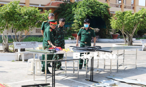 Bộ CHQS tỉnh kiểm tra vật chất, thiết bị phục vụ huấn luyện tại Trung đoàn 894. Ảnh: T.H