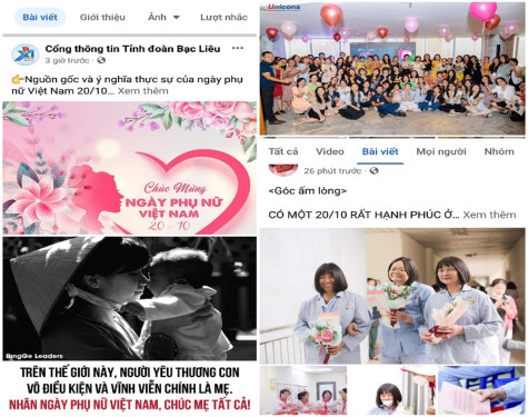 Một số bài đăng chúc mừng Ngày Phụ nữ Việt Nam 20/10. Ảnh: Nguồn Facebook