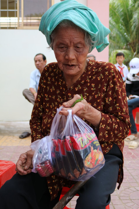Bà Vô miệng nhai trầu, ngồi nép một góc, dỡ từng gói thuốc ra xem, xúc động: “Năm nào cũng được vầy thì đỡ cho bà con nghèo lắm. Gần Tết rồi ai cũng mong được khoẻ mạnh để vui vẻ với con cháu. Với người giàu thì không bao nhiêu, còn với người khó khăn như tôi thì nhiêu thuốc, nhiêu quà đây là vô cùng quý giá”.