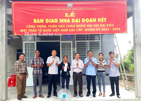 Ủy ban MTTQ Việt Nam huyện Hồng Dân bàn giao nhà đại đoàn kết cho hộ gặp khó khăn về nhà ở của xã Ninh Quới. Ảnh: T.T