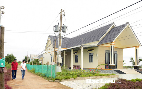Cán bộ ban công tác Mặt trận ấp 13 (xã Vĩnh Hậu A, huyện Hòa Bình) vận động người dân chăm sóc cảnh quan môi trường nông thôn xanh - sạch - đẹp. Ảnh: T.T