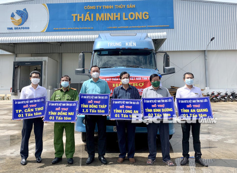 Ủy ban MTTQ Việt Nam tỉnh tiếp nhận ủng hộ tôm của các doanh nghiệp trên địa bàn TX. Giá Rai để cứu trợ người dân ở các tỉnh có dịch.