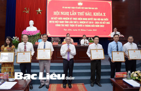 Bí thư Tỉnh ủy - Lữ Văn Hùng tặng bằng khen cho các cá nhân có thành tích xuất sắc trong công tác MTTQ.