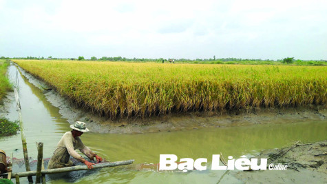 Nông dân ấp Kos Thum (xã Ninh Thạnh Lợi, huyện Hồng Dân) thực hiện sản xuất lúa - tôm mang hiệu quả. Ảnh: T.N