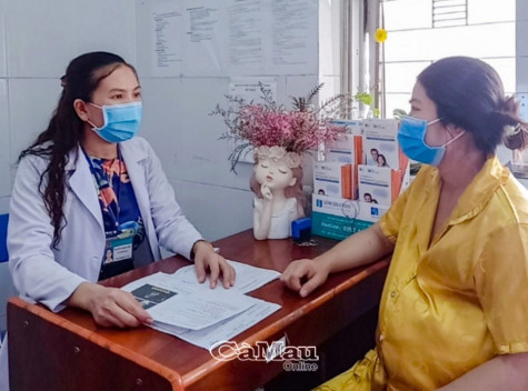 | Bác sĩ Chuyên khoa I Nguyễn Thanh Thuý, Phó trưởng khoa Khám bệnh, Bệnh viện Sản - Nhi Cà Mau tư vấn cho sản phụ về lợi ích của việc lưu trữ tế bào gốc. |