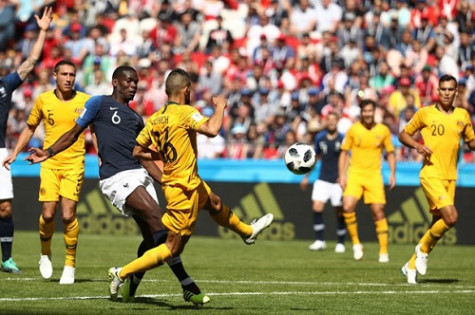 Bước sang hiệp hai, điều cần nhất là bàn thắng cuối cùng đã đến. Ở phút 55, Pogba chọc khe tinh tế để Griezmann thoát xuống. Trong nỗ lực truy cản, hậu vệ của Australia phạm lỗi trong khu vực 16m50. Sau thời gian xem lại tình huống từ công nghệ VAR, trọng tài chính quyết định quả 11m cho tuyển Pháp. Đứng trước cơ hội không thể tốt hơn, chính Griezmann thực hiện thành công quả đá phạt, ghi bàn thắng mở tỷ số cho tuyển Pháp.