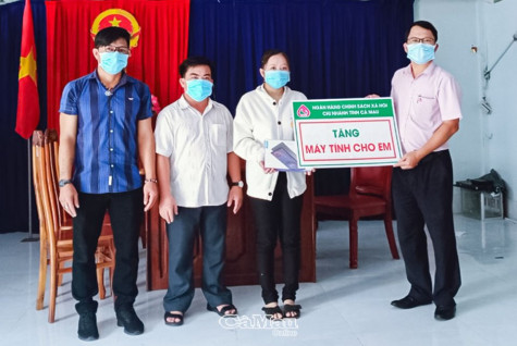 (CMO) Nhằm tạo điều kiện cho các em học sinh được thuận lợi hơn trong học tập, vượt qua khó khăn do ảnh hưởng dịch bệnh Covid-19, Công đoàn cơ sở Ngân hàng Chính sách xã hội tỉnh Cà Mau vừa trao tặng 6 máy tính bảng cho 6 em học sinh có hoàn cảnh đặc biệt khó khăn.