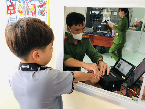 Công an tỉnh Bạc Liêu làm thủ tục cấp Căn cước cho trẻ em.
