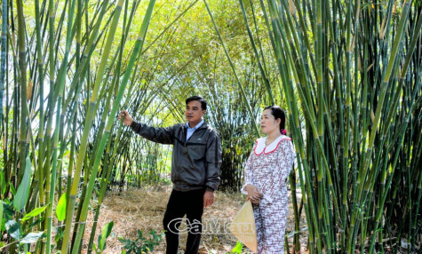 | Gia đình chị Lý Kim Em (Ấp 3) trồng trúc, tạo nguồn nguyên liệu duy trì nghề đan đát truyền thống tại địa phương. |