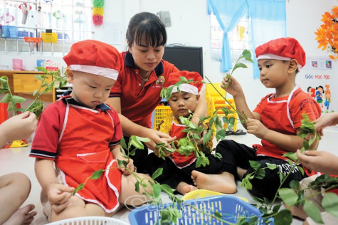 Trẻ giúp cô lặt rau chuẩn bị bữa ăn hàng ngày. |