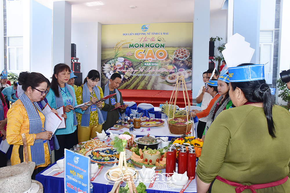 Hội thi “Món ngon từ gạo” do Hội Liên hiệp Phụ nữ (LHPN) tỉnh Cà Mau tổ chức vào sáng 26/4, trong khuôn khổ hoạt động của Tuần lễ Khoa học, Công nghệ - Văn hoá, Du lịch và Cuộc thi “Gạo ngon ĐBSCL” lần thứ I/2026.