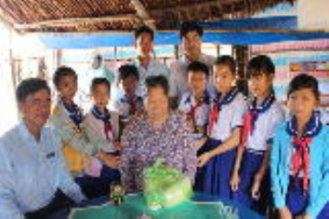 | Liên đội trường Tiểu học Mương Điều thăm hỏi và tặng quà Mẹ Việt Nam anh hùng từ nguồn quỹ “Nuôi heo đất”. |