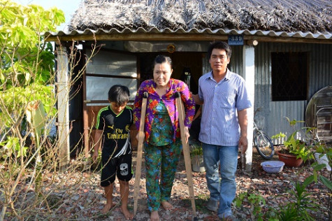 Vợ anh bị khuyết tật từ nhỏ, đi lại đã khó khăn. Tai nạn làm vợ anh gãy chân, hiện đang kẹp inox và đi lại bằng nạng, sức khỏe yếu dần, mọi sinh hoạt đều do chồng giúp đỡ. Đứa con nhỏ 8 tuổi thì được chẩn đoán mất trí nhớ tạm thời. Cuộc sống ngày càng bế tắc hơn khi căn nhà được xây dựng trước đó đã xuống cấp, mùa mưa đến nhiều đêm 2 vợ chồng phải thức trắng vì mưa dột không thể ngủ được. Tuy nhiên, mới đây chị Ly còn phải mổ khối u tử cung. Do không có tiền khám và điều trị nên từ khi đi mổ tới nay chị vẫn chưa tái khám lần nào.