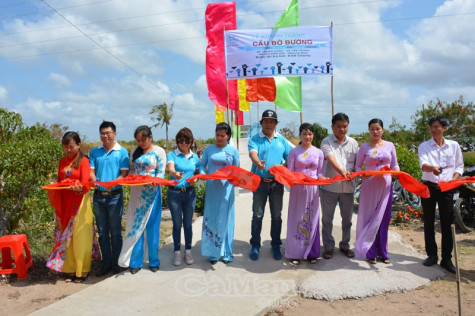 | Các nhà hảo tâm hỗ trợ xây dựng cầu Bờ Bường, ấp Tân Phú, xã Tân Trung, tạo điều kiện cho người dân đi lại thuận lợi. |