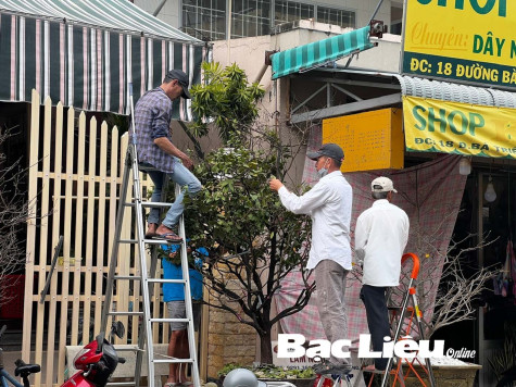 Người dân lặt lá mai để cây trổ hoa vào dịp Tết. Ảnh: C.L