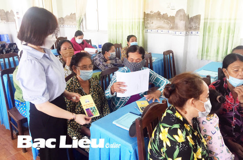Phát tờ rơi tuyên truyền pháp luật cho người dân. Ảnh: K.K