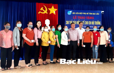 Hội LHPN tỉnh vận động tặng thẻ bảo hiểm y tế cho cán bộ phụ nữ cơ sở khó khăn trên địa bàn TP. Bạc Liêu.