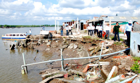 | Những năm gần đây, nhiều hộ dân ở khu vực xã Hàng Vịnh, huyện Năm Căn thường xuyên đối mặt với sạt lở ngày một nghiêm trọng. |