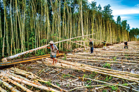 Người dân không chỉ trồng cây tràm để bán làm cừ mà còn trồng cây keo lai, nguyên liệu làm ra giấy xuất khẩu.