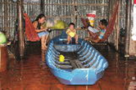 | Anh Nguyễn Văn Thận, Ấp 13, xã Khánh An, huyện U Minh chống xuồng vào tận nhà. |