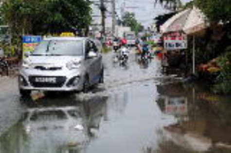 | Đường Nguyễn Đình Chiểu, thuộc Khóm 8, Phường 8 thường xuyên ngập nước. Hiện mặt đường bong tróc, nhiều ổ gà lớn, gây nguy hiểm cho người tham gia giao thông. |