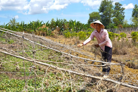 “Đất nứt nẻ như thế này thì cây đậu cũng thua chứ nói gì đến cây khác. Khô hạn quá nên rễ cây đậu bị chẻ làm đôi, rễ chết thì trái cũng coi như mất trắng. Khổ cho những hộ dân trồng ở đây, bao nhiêu hy vọng, vốn liếng chắc đổ sông đổ biển hết rồi. Chật vật vẫn là những hộ vay tiền trồng đậu xanh”, anh Nghĩa ngậm ngùi.