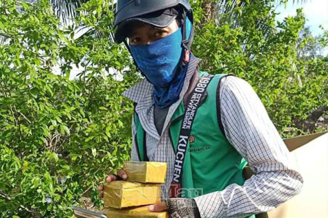 | Nhân viên giao hàng trang bị khẩu trang khi tiếp xúc khách hàng. |