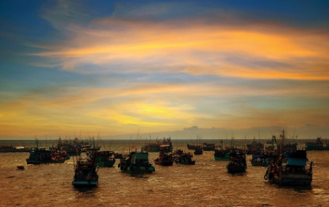 | Hàng trăm tàu hối hả ra khơi khai thác và ăn Tết trên biển. |