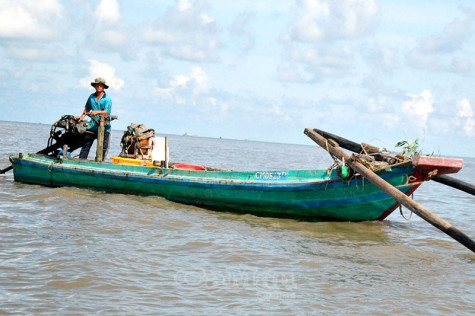 Dù nói là đã quen, nhưng nỗi lo lắng vẫn hiện rõ trên khuôn mặt của lão ngư Năm Sến: “Đã gần nửa tháng nay có đánh bắt được gì đâu, biển lúc động lúc tĩnh, vỏ máy ra được tí rồi lại vào”. Vừa chuyện vãn, ông Năm Sến vừa kiểm tra lại các nắp can trước khi xếp vào khoang vỏ gần nơi mình ngồi. Bởi bản thân ông nhận thức được đây là thiết bị phòng thân duy nhất khi có chuyện bất trắc xảy ra trên biển. Đã mấy mươi năm gắn bó với nghề, bản thân ông biết rõ sự khắc nghiệt của biển cả là thế nào.