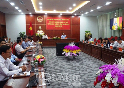 Phó chủ tịch UBND tỉnh Trần Hồng Quân cùng lãnh đạo các sở, ngành tham dự hội nghị trực tuyến toàn quốc tổng kết 5 năm giai đoạn 2016-2020 ngành Nội vụ