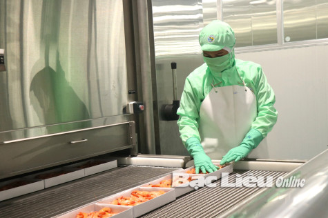Chế biến tôm xuất khẩu tại Nhà máy thủy sản Việt - Úc. Ảnh: K.T