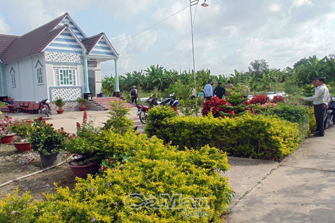 Nhiều năm nay, gia đình ông Nhàn đã trồng hàng rào cây xanh bằng cây dâm bụt, chuỗi ngọc. Nhờ chịu khó chăm sóc, cắt tỉa, hàng rào cây xanh của gia đình trở thành một trong những hàng rào đẹp nhất của ấp. Khuôn viên trước nhà ông Nhàn trồng mai vàng, cau, cây kiểng… được cắt tỉa gọn gàng, góp phần làm đẹp ngôi nhà. Trước nhà ông Nhàn được gắn bóng đèn chuyên dụng để mở vào mỗi buổi tối, thuận lợi cho việc đi lại của người dân địa phương. Nhiều người đi ngang tuyến đường này cảm thấy thích thú, khen ngợi.
