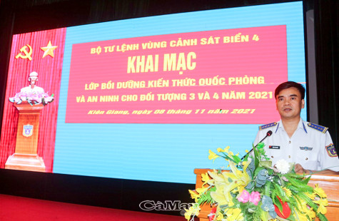 (CMO) Sáng ngày 8/11, Bộ Tư lệnh Vùng Cảnh sát biển 4 tổ chức khai mạc Lớp bồi dưỡng kiến thức quốc phòng - an ninh (QP-AN) cho đối tượng 3 và 4. Đồng chí Đại tá Trần Văn Lượng, Ủy viên Ban Thường vụ, Phụ trách Tư lệnh Vùng, dự và phát biểu khai mạc.