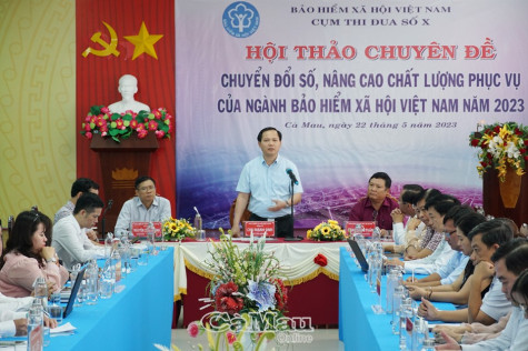 (CMO) Sáng ngày 22/5, tại Bảo hiểm xã hội (BHXH) tỉnh Cà Mau, Cụm thi đua số X, BHXH Việt Nam tổ chức Hội thảo chuyên đề “Chuyển đổi số, nâng cao chất lượng phục vụ của ngành BHXH Việt Nam năm 2023”. Dự và chỉ đạo có ông Chu Mạnh Sinh, Phó Tổng Giám đốc BHXH Việt Nam, Tổ trưởng Tổ triển khai Đề án 06.