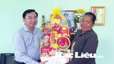 Lãnh đạo tỉnh thăm, tặng quà hộ Khmer có hoàn cảnh khó khăn. Ảnh: T.Q