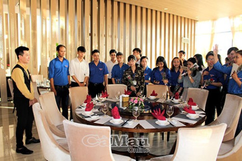 (CMO) Vừa qua, Phân hiệu trường Đại học Bình Dương tại Cà Mau (Phân hiệu) tổ chức cho sinh viên trải nghiệm kỹ năng lễ tân - khánh tiết tại Khách sạn Mường Thanh Luxury Cà Mau.