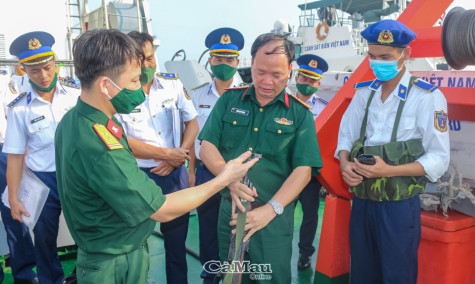 | Đại tá Đinh Huy Chung, Phó Tham mưu trưởng Tổng cục Kỹ thuật, kiểm tra thực tế tại Vùng Cảnh sát biển 4. |