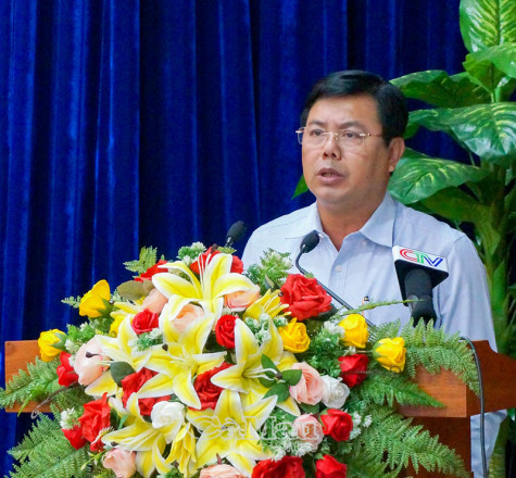 Bí thư Tỉnh uỷ Cà Mau Nguyễn Tiến Hải phát biểu tại Hội nghị. |