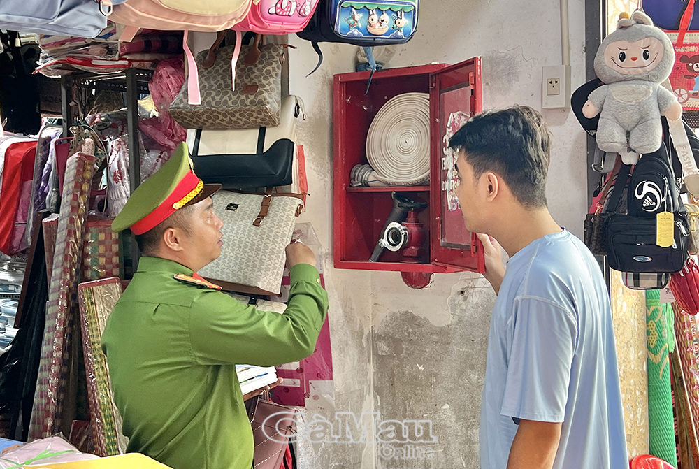 Tại đây, lực lượng chức năng trực tiếp tuyên truyền đến Ban Quản lý chợ và các tiểu thương, nhất là những hộ kinh doanh mặt hàng dễ cháy nổ; đồng thời kiểm tra, hướng dẫn sử dụng bình chữa cháy tại chỗ.