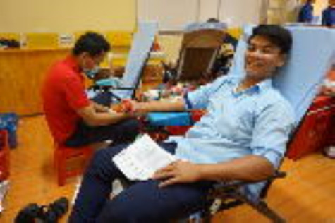 Sinh viên Trường Cao đẳng Cộng đồng hăng hái tham gia hiến máu trong ngày hội hiến máu tình nguyện. |