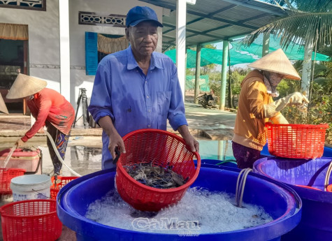 | Nông dân ấp Kênh 6, xã Tân Bằng, thu hoạch tôm càng xanh. |