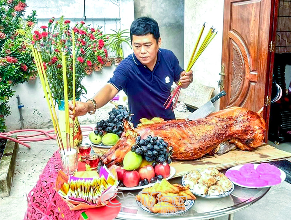 Cúng cuối năm ở một gia đình người Hoa phường Bạc Liêu. Ảnh: GIA LỘC